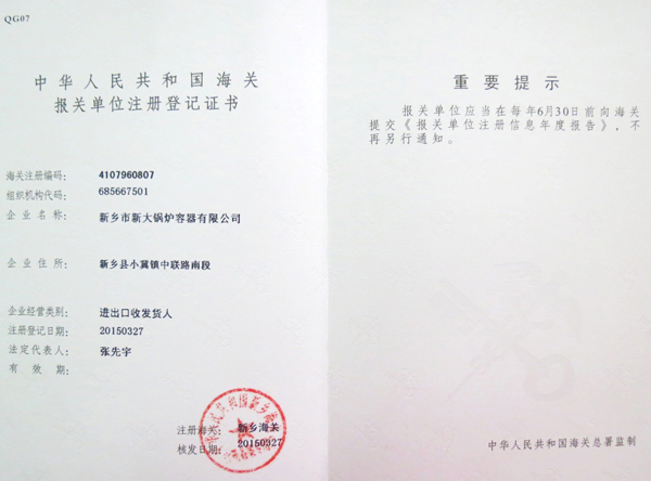 報關注冊登記證書