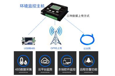 環境監控主機具有數據顯示、數據存儲、超限脫機報警的功能:主機帶有大尺寸液晶顯示屏,實時顯示CO2濃度的最新數據;它內置高容量存儲器,自動接收存儲數據,最多可存52萬條;若室內CO2濃度超限,一方面主機屏幕輪顯超限信息,另一方面主機會給管理人員發送告警短信,提醒濃度超限。此外,小主機帶有1路繼電器觸點輸出,能夠智能調節室內的二氧化碳濃度,方便用戶管理。